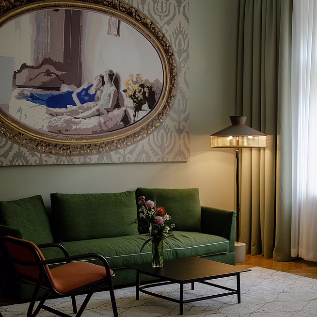 Ein weiteres Stück Wiener Geschichte verkörpert die Zimmerausstattung der Gebrüder Thonet Vienna. Die Wiener Möbelmanufaktur gibt es seit 1853 und ihre Designs gelten inzwischen zu den großen Designikonen des Industriezeitalters. Sie finden aber nicht nur die klassischen Thonet-Stücke, sondern auch moderne Interpretationen davon in Helga's Room. So zum Beispiel den Allegory Desk, das Mos Cabinet oder den Peers Beistelltisch. Viele weitere finden Sie außerdem in unserer Thonet-Suite #15.